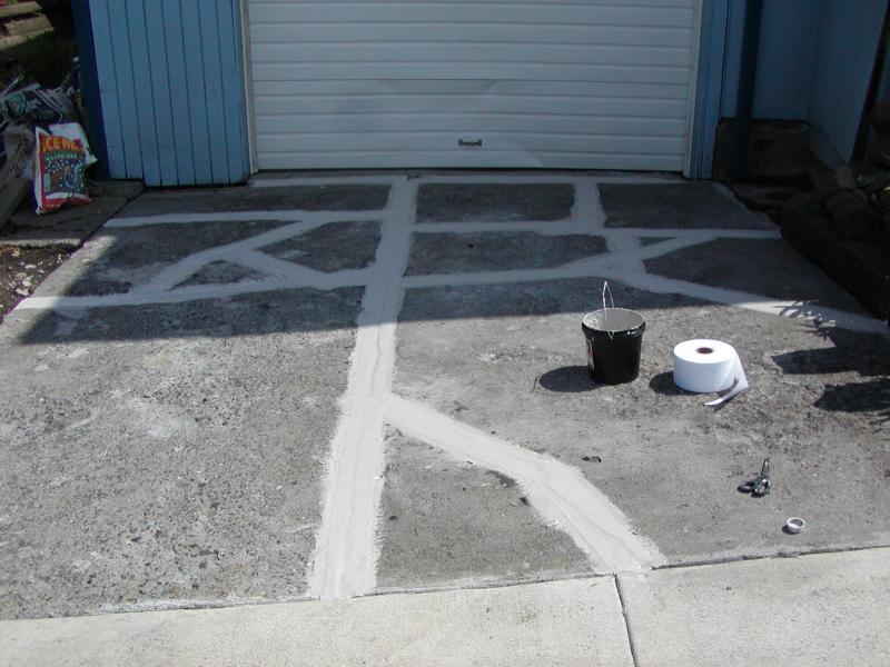 This worn, cracked driveway was restored using a concrete refinishing process, which restored the original appearance of the old driveway without the need to pour new concrete!